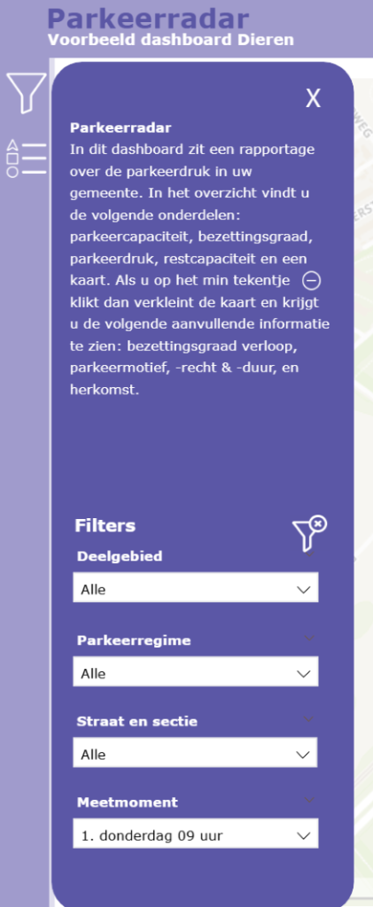 Filters werken nu slimmer op bijvoorbeeld parkeermotief, parkeerduur en herkomst. De kaartfunctionaliteit is uitgebreid: loopafstanden kunnen nu eenvoudig worden gemeten met een meetinstrument.